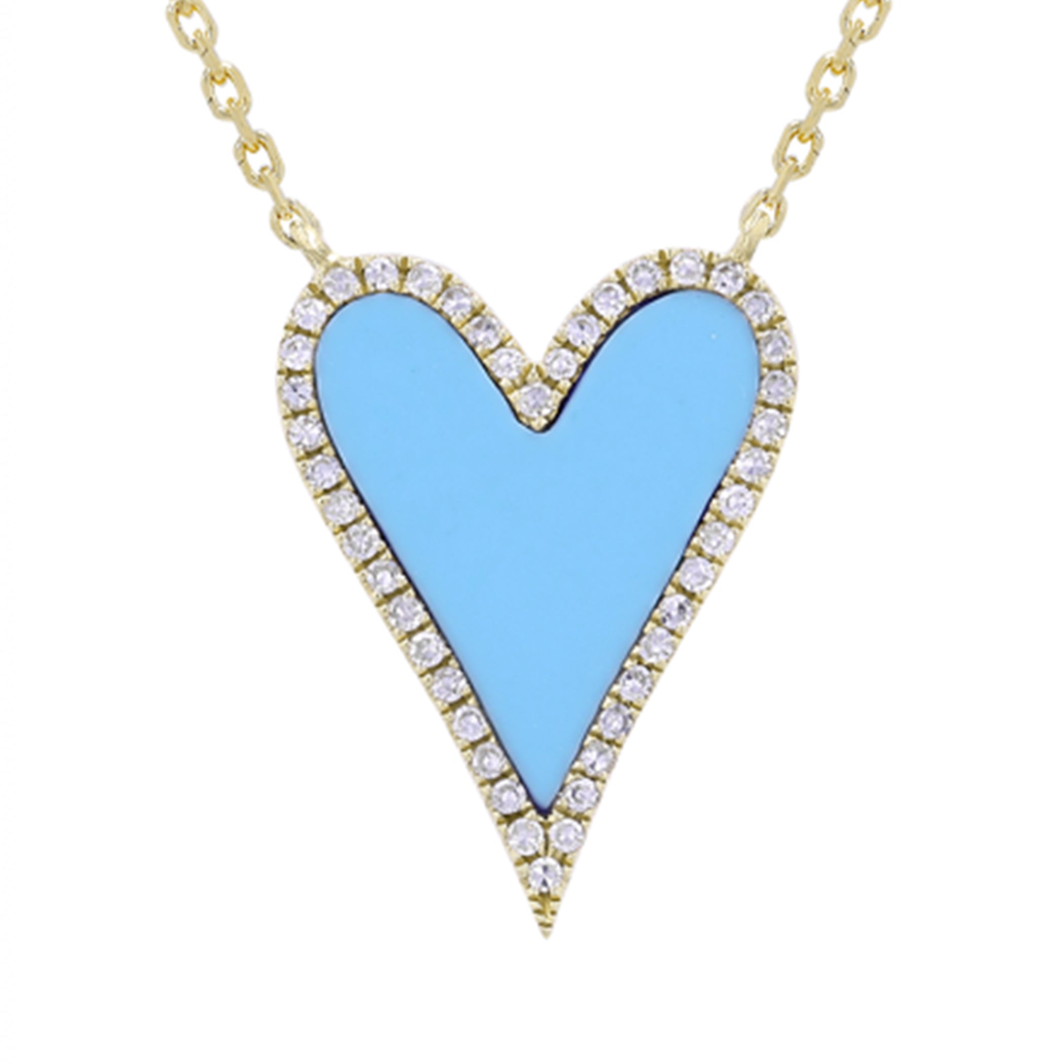 14K LARGE DIAMOND PAVE AND TURQUOISE POINTY HEART NECKLACE