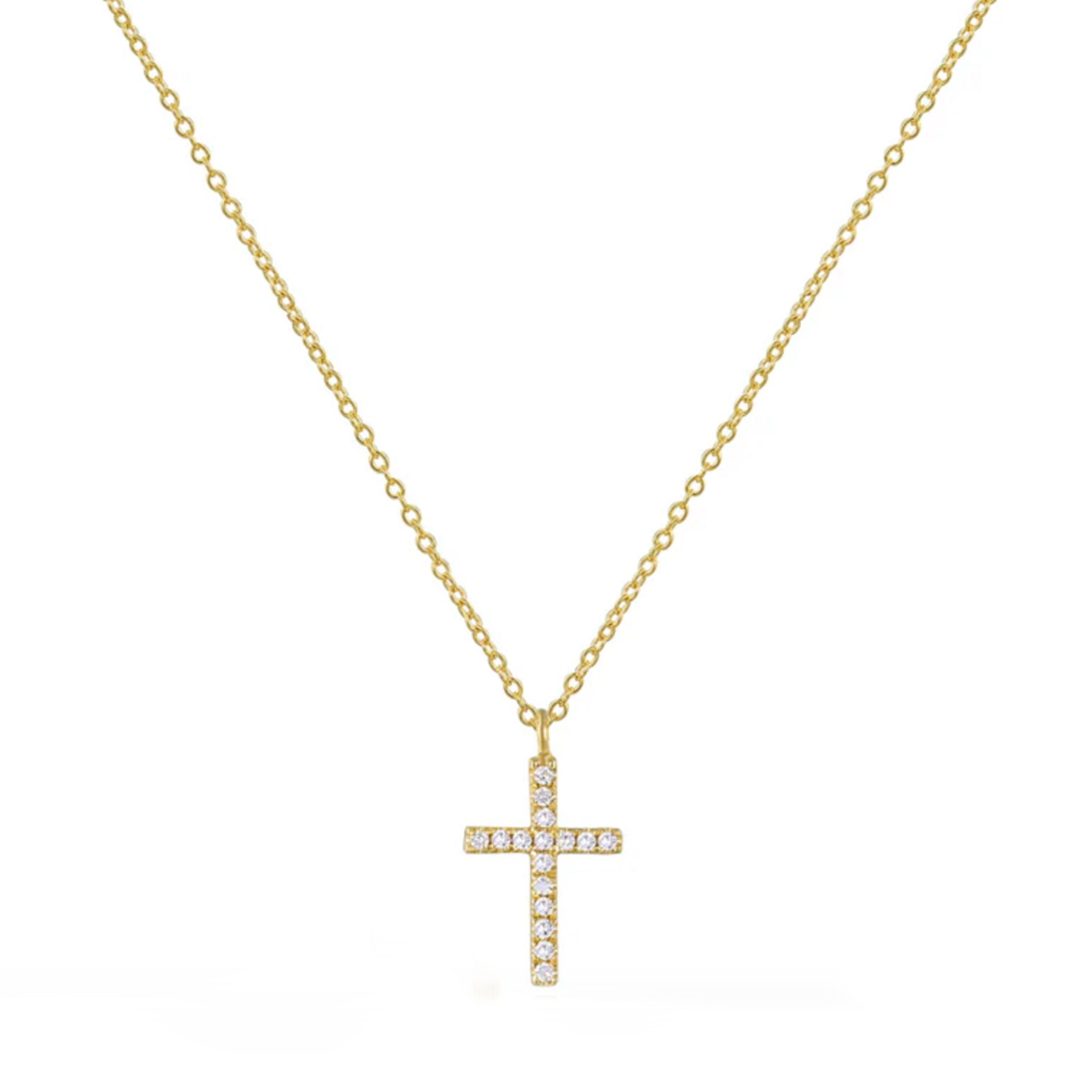 14K SMALL DANGLING DIAMOND PAVE CROSS NECKLACE